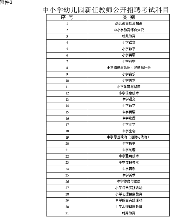 3.中小學(xué)幼兒園新任教師公開招聘考試科目