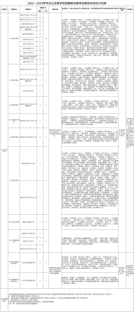 1、2022—2023學(xué)年臺(tái)江區(qū)屬學(xué)校招聘新任教師及教研員崗位計(jì)劃表
