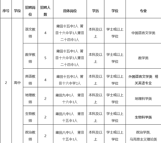 1.新招聘教師實(shí)行服務(wù)年限制度,須在荔城區(qū)服務(wù)最低5年。