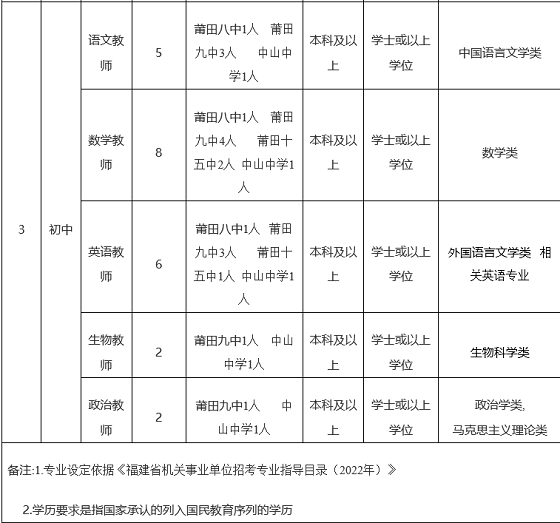為吸引優(yōu)秀高校畢業(yè)生到我區(qū)任教,建設(shè)高素質(zhì)教師隊(duì)伍,根據(jù)《福建省教育廳中共福建省委機(jī)構(gòu)編制委員會(huì)辦公室福建省財(cái)政廳福建省人力資源和社會(huì)保障廳印發(fā)<關(guān)于進(jìn)一步做好全省中小學(xué)幼兒園教師補(bǔ)充工作的若干措施>的通知》(閩教規(guī)[2022]3號(hào))精神,結(jié)合我區(qū)實(shí)際,現(xiàn)就2022年莆田市荔城區(qū)考核招聘中學(xué)新任教師方案公告如下: