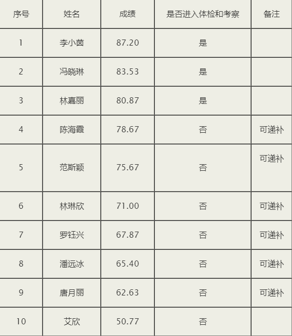 廣州市天河實(shí)驗(yàn)幼兒園2022年第三次編外聘用制專(zhuān)任教師考試工作已完成,現(xiàn)將成績(jī)以及體檢的名單予以公布,并將體檢有關(guān)事項(xiàng)公告如下:
