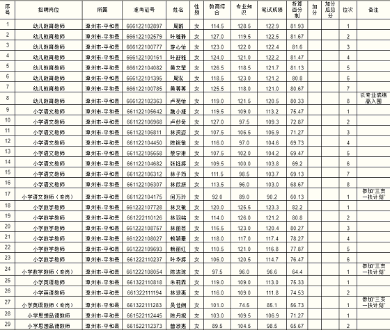 附件:平和縣2022年公開招聘中小學(xué)幼兒園新任教師資格復(fù)審人員名單
