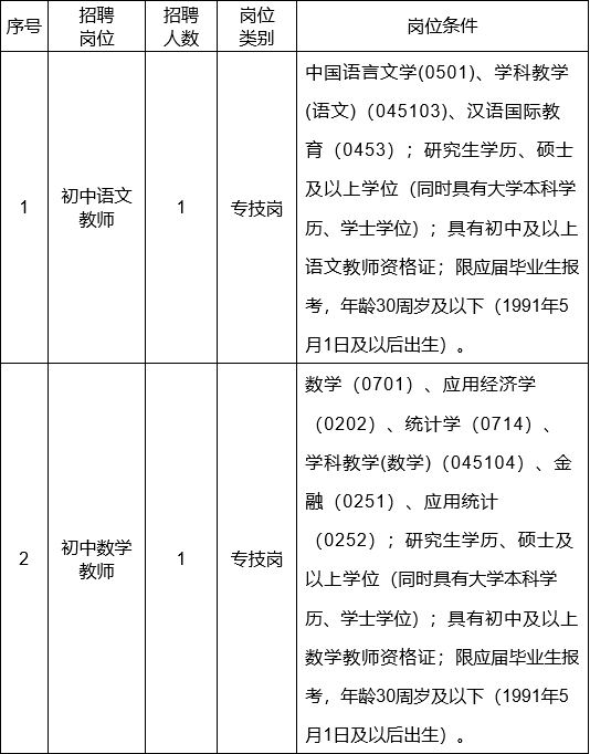 現(xiàn)因?qū)W校事業(yè)發(fā)展及工作需要,經(jīng)學(xué)校研究決定,2022年面向社會(huì)公開(kāi)招聘初中教師。