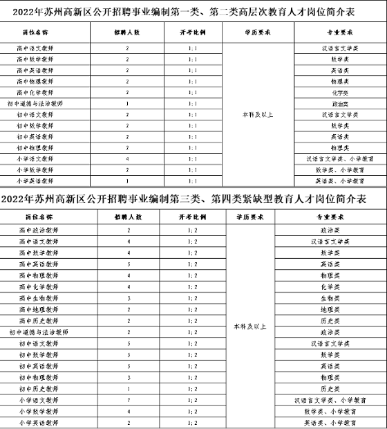 根據(jù)全區(qū)教育事業(yè)發(fā)展及教師隊(duì)伍建設(shè)的實(shí)際需要,經(jīng)研究決定,蘇州高新區(qū)所屬公辦中小學(xué)面向社會(huì)公開(kāi)招聘事業(yè)編制高層次、緊缺型教育人才90名,現(xiàn)將有關(guān)事項(xiàng)公告如下: