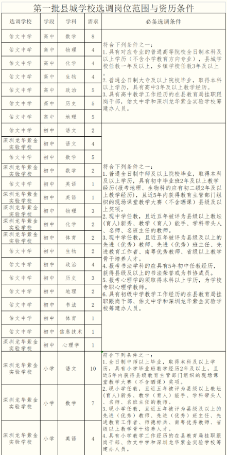1.第一批縣城學(xué)校選調(diào)崗位范圍與資歷條件