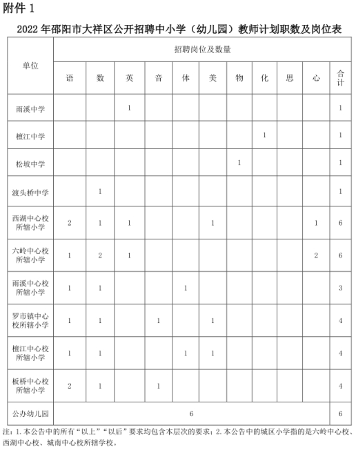 附件1:2022年邵陽(yáng)市大祥區(qū)公開招聘中小學(xué)(幼兒園)教師計(jì)劃職數(shù)及崗位表