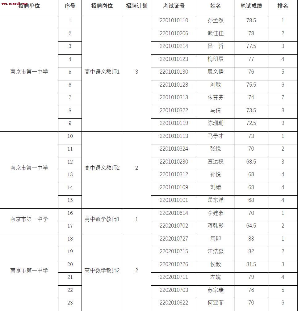 南京市第一中學2022年6月公開招聘教師進入資格復審人員名單