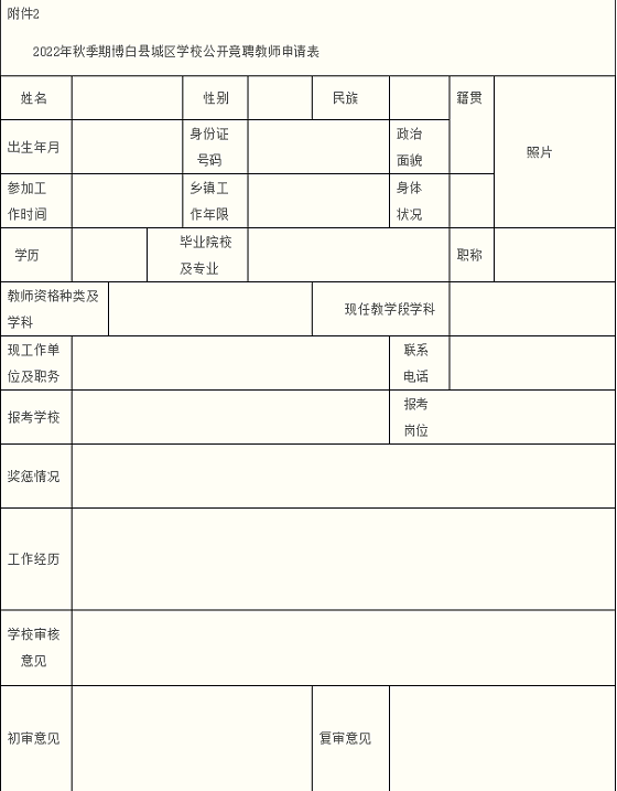 2.2022年秋季期博白縣城區(qū)學校公開競聘教師申請表