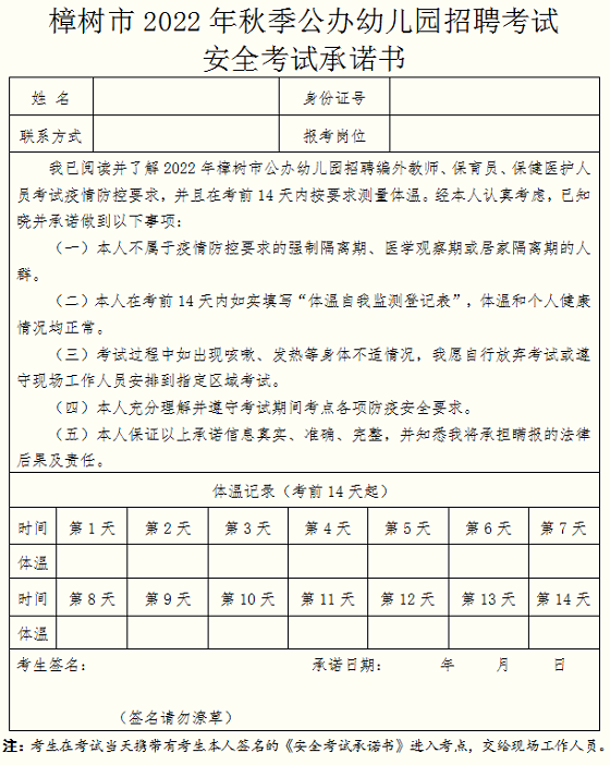 3.樟樹市2022年秋季公辦幼兒園招聘考試《安全考試承諾書》