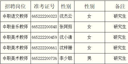 根據(jù)《2022年詔安縣公開(kāi)招聘中小學(xué)幼兒園新任教師崗位條件一覽表》中的研究生各崗位報(bào)名情況,經(jīng)初步審核報(bào)考人員的資格條件,確定以下報(bào)考人員為面試對(duì)象: