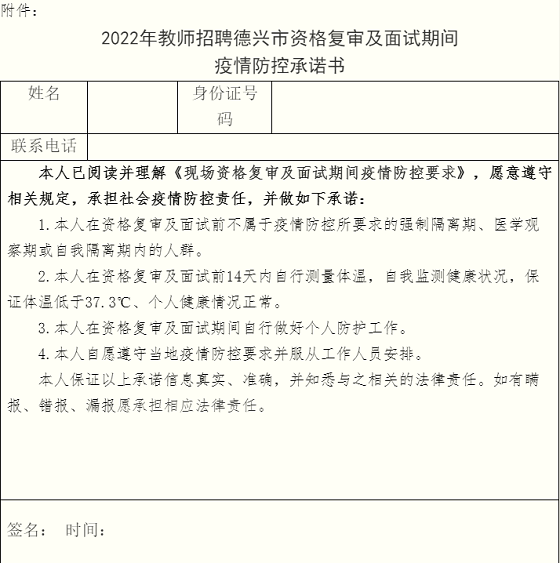 5.考生應如實填報健康狀況(承諾書),弄虛作假或瞞報造成嚴重后果的將依法追責?忌孕写蛴∫环莩兄Z書,于面試當天交門衛(wèi)工作人員。(承諾書見附件)