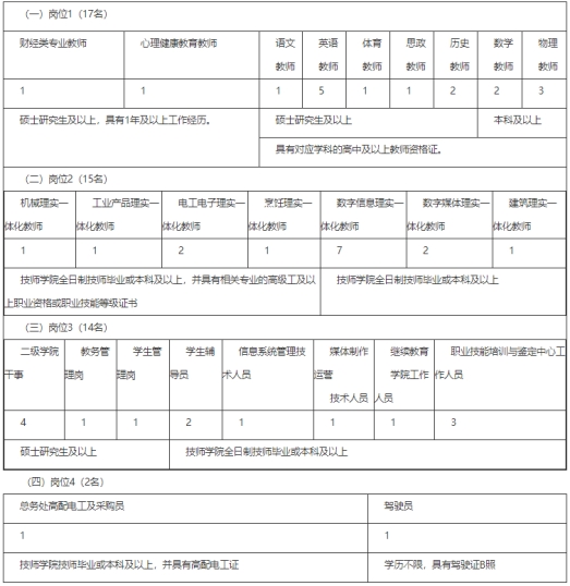 (五)教師崗要求具有高中及以上相應(yīng)學(xué)科的教師資格證書(含中等職業(yè)學(xué)校、高等教育),崗位1中的基礎(chǔ)學(xué)科教師必須持有對應(yīng)學(xué)科高中及以上教師資格證書才能報名;其它教師崗須在2年內(nèi)取得教師資格證書,否則解除聘用合同。