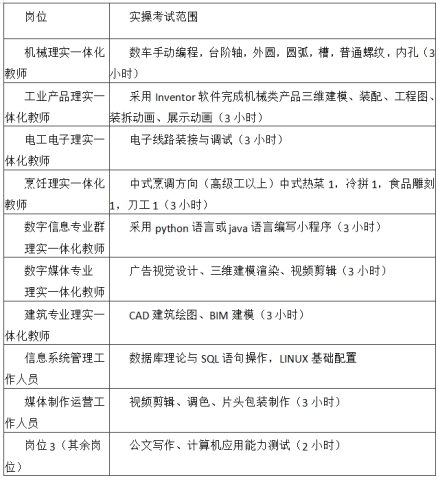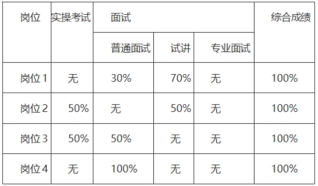 考試由實操考試、普通面試、試講、專業(yè)面試幾方面組成,具體要求及分值占比見下表: