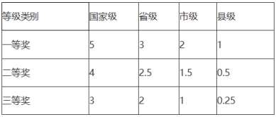 ②2020年9月以來(lái)由教育行政主管部門(mén)組織的各類(lèi)教師競(jìng)賽(不含學(xué)生指導(dǎo)獎(jiǎng))活動(dòng),按下表加分(同年度同類(lèi)獎(jiǎng)項(xiàng)取最高獎(jiǎng)項(xiàng)加分,不累計(jì)加分):
