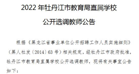 2022年黑龍江牡丹江市教育局直屬學(xué)校公開(kāi)選調(diào)教師公告【30人】