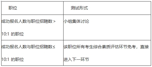 4.主要采取小組集體討論形式,對考生進(jìn)行考核。各職位具體考核形式見下表。