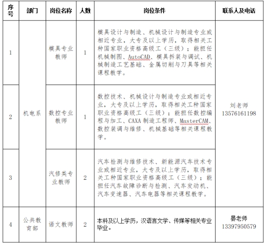 江西省輕工業(yè)高級(jí)技工學(xué)校創(chuàng)建于1978年,位于江西省宜春市袁州區(qū)環(huán)城南路199號(hào),是由省教育廳直屬的一所公辦中等職業(yè)學(xué)校、全國(guó)重點(diǎn)技工學(xué)校。因?qū)W校發(fā)展和教育教學(xué)需要,現(xiàn)面向社會(huì)招聘外聘專(zhuān)業(yè)教師2名。
