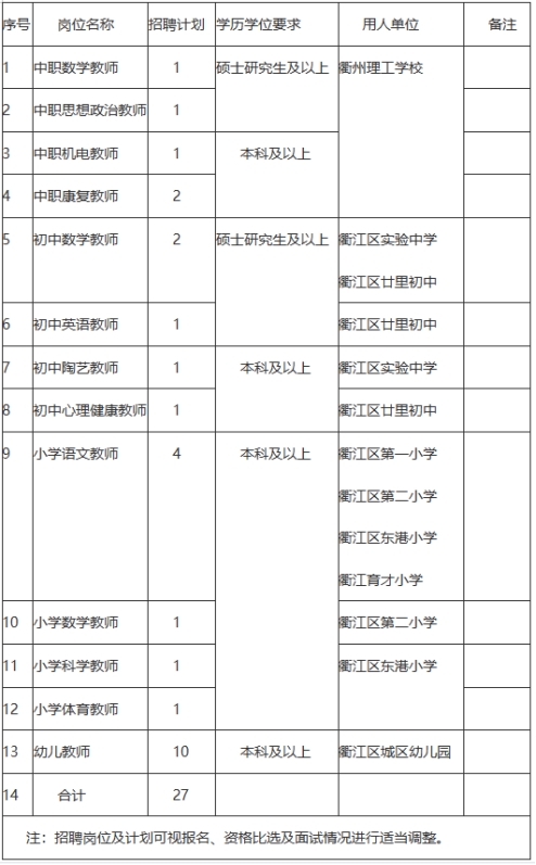 本招聘公告由衢江區(qū)教育局、衢江區(qū)人力資源和社會(huì)保障局負(fù)責(zé)解釋,未盡事宜由衢江區(qū)教育局、衢江區(qū)人力資源和社會(huì)保障局研究決定。