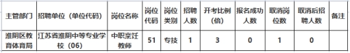 2023年淮安市淮陰區(qū)公開招聘教師報名工作已結(jié)束。因部分崗位(詳見下表)符合報名條件人數(shù)未達到《2023年淮安市淮陰區(qū)公開招聘教師公告》規(guī)定的開考比例,現(xiàn)根據(jù)《2023年淮安市淮陰區(qū)公開招聘教師公告》的規(guī)定,取消相關(guān)崗位的招聘計劃,F(xiàn)將本次招聘崗位取消情況公告如下: