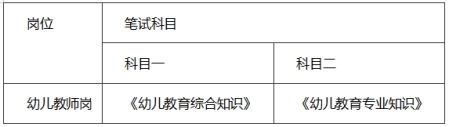 幼兒教師崗筆試采取閉卷形式進(jìn)行,考試科目如下表: