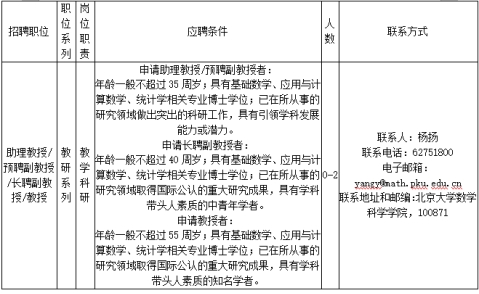 5.三封及以上獨立的專家推薦信,另外可提供導師或合作導師的推薦信(需推薦人簽字,直接發(fā)送到y(tǒng)angy@math.pku.edu.cn);申請長聘職位(教授或長聘副教授)的,學院會參照長聘職位聘任評估要求進行外送同行評審,個人可提供部分建議名單,由我院直接聯(lián)系。