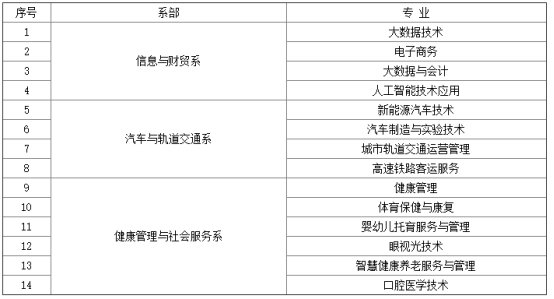 4.交通運輸類、汽車制造類、電子信息類、商務財會類、健康管理類及相近相關專業(yè)。學院開設專業(yè)詳見附表。