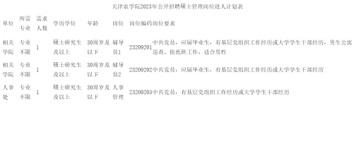 具體招聘崗位見(jiàn)《天津農(nóng)學(xué)院2023年公開(kāi)招聘碩士管理崗位進(jìn)人計(jì)劃表》。