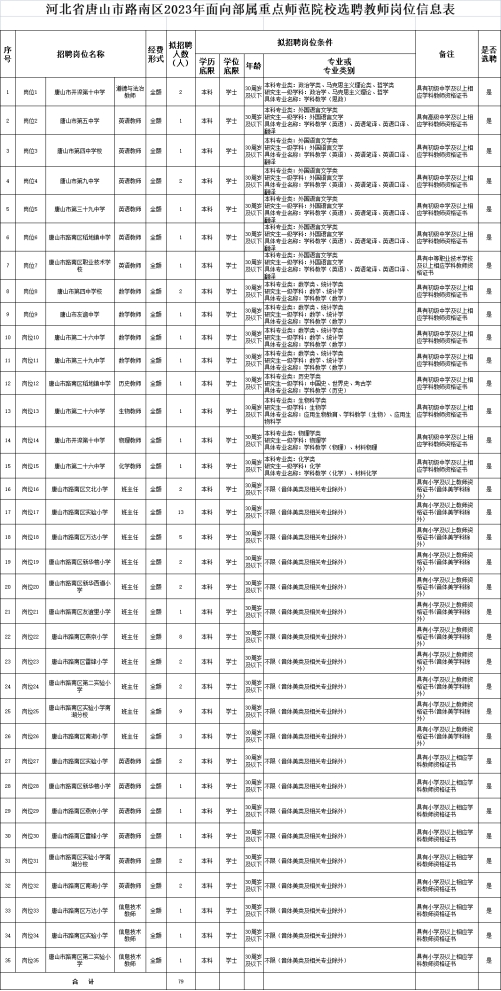 選聘崗位所需要的具體條件按《河北省唐山市路南區(qū)2023年面向部屬重點(diǎn)師范院校選聘教師崗位信息表》要求確定。