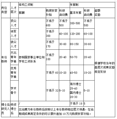 全職引進(jìn)待遇(單位:人民幣萬元)