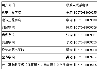 (二)人事處聯(lián)系電話:0575-88009054(金老師)、0575-88009048(任老師)