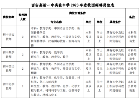 根據(jù)中共西安高新區(qū)工委組織人事部、西安高新區(qū)教育體育局關(guān)于西安高新區(qū)2023年公辦學(xué)校進(jìn)校園招聘相關(guān)工作安排,為進(jìn)一步充實(shí)各“+!苯處熽(duì)伍力量,優(yōu)化教師結(jié)構(gòu),現(xiàn)結(jié)合各校實(shí)際情況,我,F(xiàn)招聘2023屆優(yōu)秀畢業(yè)生16人。