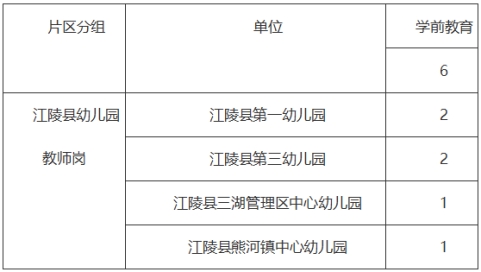 根據(jù)《省教育廳省委編辦省人社廳省財政廳省發(fā)改委關于做好2023年全省中小學教師公開招聘工作的通知》(鄂教人函〔2023〕2號),結合江陵縣公辦幼兒園編制、崗位空缺情況,江陵縣教育局面向社會公開招聘公辦幼兒園教師6名。現(xiàn)將有關事項公告如下: