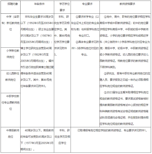 本次招聘考試解釋權(quán)歸福州市教育局,公告按“月日”格式寫的時間均指2023年。政策咨詢電話:
