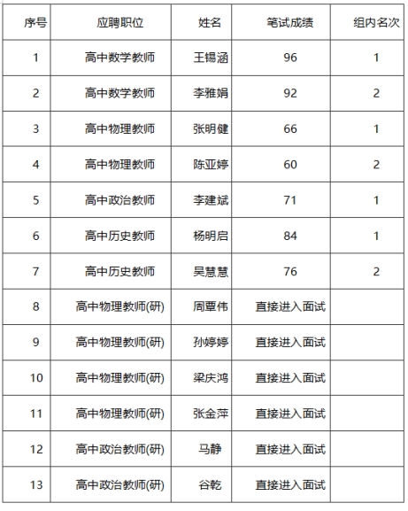 根據(jù)《響水縣清源高級中學(xué)2023年赴忻州師范學(xué)院校園招聘教師公告》精神,經(jīng)筆試,現(xiàn)將響水縣清源高級中學(xué)2023年赴忻州師范學(xué)院校園招聘教師擬進入面試人員成績及名單予以公布。