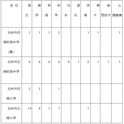 根據(jù)《事業(yè)單位人事管理條例》(國務(wù)院令第652號令)、《臺州市事業(yè)單位公開招聘人員實施辦法》(臺政辦發(fā)〔2008〕82號)、《關(guān)于進(jìn)一步加強(qiáng)事業(yè)單位公開招聘和人員流動管理工作的實施意見》(臺人社發(fā)〔2015〕107號)等有關(guān)規(guī)定和臺州灣新區(qū)教育事業(yè)發(fā)展需要,經(jīng)研究決定面向社會公開招聘中小學(xué)全額補(bǔ)助事業(yè)編制教師。現(xiàn)將相關(guān)事項公告如下: