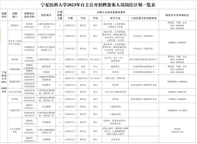 4.身心健康,符合《寧夏醫(yī)科大學(xué)2023年自主公開招聘備案人員崗位計劃一覽表》中崗位條件。