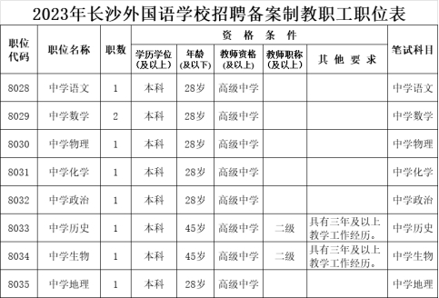 2.具備招聘職位所需的資格條件(見(jiàn)上表《2023年長(zhǎng)沙外國(guó)語(yǔ)學(xué)校招聘?jìng)浒钢平搪毠ぢ毼槐怼,以下?jiǎn)稱《職位表》)。報(bào)考人員的所學(xué)專業(yè)或教師資格證學(xué)科(或崗位需要的其他類執(zhí)業(yè)資格)或?qū)I(yè)技術(shù)職務(wù)(職稱)學(xué)科須與所報(bào)考的職位相符。