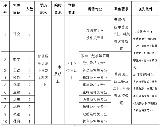 (5)具有教育教學(xué)經(jīng)驗,特別是具有中高考復(fù)習(xí)備考經(jīng)驗的名、特、優(yōu)教師不受招聘崗位及人數(shù)的限制,可直接電話聯(lián)系面談。