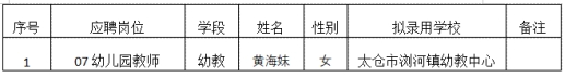 2022年蘇州太倉市公開招聘備案制幼兒園教師擬錄用人員名單