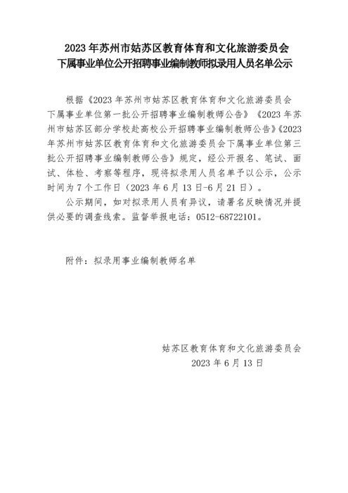 2023年蘇州姑蘇區(qū)教體文旅委下屬幼兒園備案制教師招聘擬錄用人員名單公示