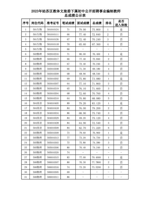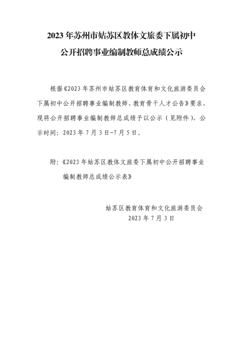 2023年蘇州姑蘇區(qū)教體文旅委下屬初中公開招聘事業(yè)編制教師總成績(jī)公示