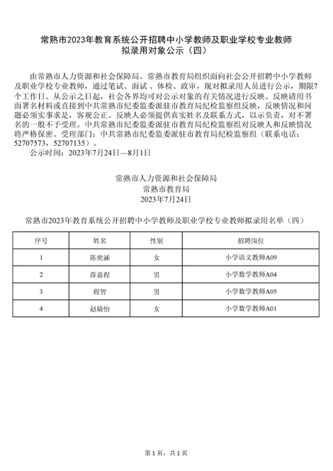 2023年蘇州常熟市教育系統(tǒng)公開招聘中小學(xué)教師及職業(yè)學(xué)校專業(yè)教師擬錄用對(duì)象公示(四)