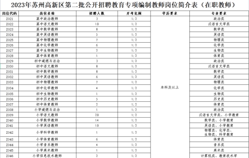 2023年蘇州高新區(qū)第二批公開招聘教育專項編制教師崗位簡介表(在職教師)