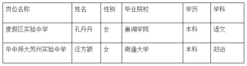 根據(jù)《2023年蘇州市吳中區(qū)教育局公開(kāi)招聘中小學(xué)教師公告》的規(guī)定,經(jīng)公開(kāi)報(bào)名、筆試、面試、體檢和考察等程序,擬錄用以下11名同志,現(xiàn)予以公示,公示時(shí)間為2023年8月3日至2023年8月11日。公示期間,如對(duì)擬錄用人員有異議,請(qǐng)署名反映情況,并提供必要的調(diào)查線索。監(jiān)督舉報(bào)電話:0512-65280959。