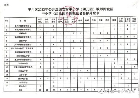 1.平川區(qū)2023年公開選調(diào)農(nóng)村中小學(xué)(幼兒園)教師到城區(qū)中小學(xué)(幼兒園)任教報名名額分配表