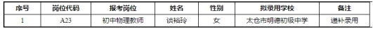 2023年蘇州太倉市公開招聘事業(yè)編制教師擬錄用人員名單