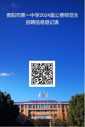 凡符合應聘條件者,請掃下方二維碼填寫《貴陽市第一中學2024屆公費師范生招聘信息登記表》,填寫時請保證所提供的個人信息真實有效,若因提供虛假信息或隱瞞相關情況影響錄用的,后果自行承擔。
