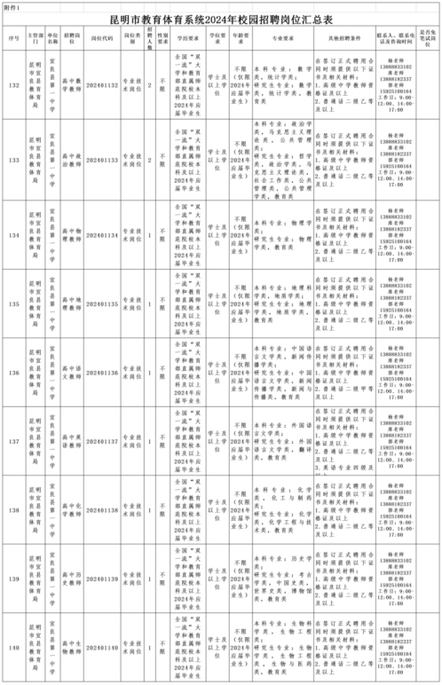 以《昆明市教育體育系統(tǒng)2024年校園招聘公告》為準。