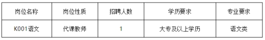 因工作需要,現(xiàn)公開招聘代課教師1名,現(xiàn)將有關(guān)事項(xiàng)公布如下: