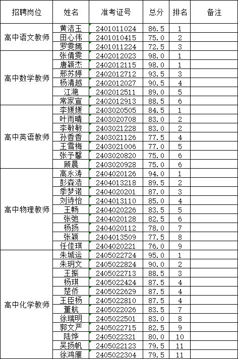 五、南京市第一中學(xué)2023年公開招聘教師資格復(fù)審考生名單